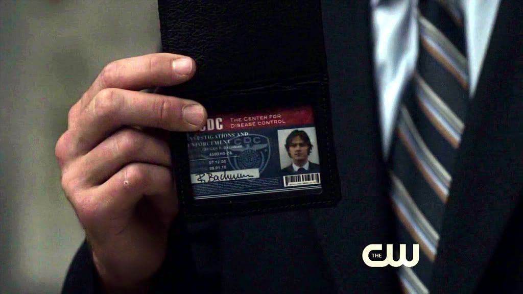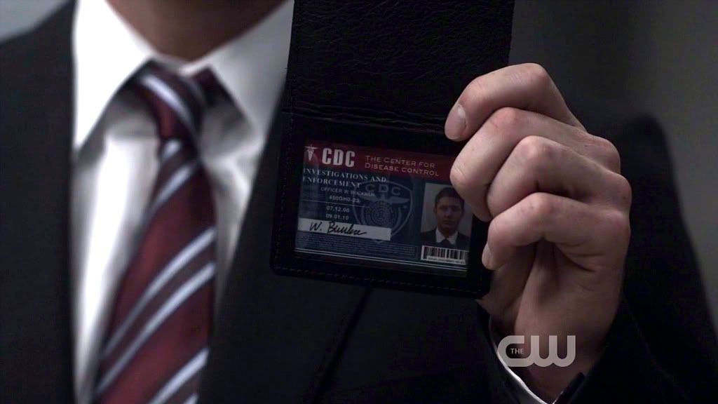 1. Individual shots of badge flashing this time. Sam's long fingers...