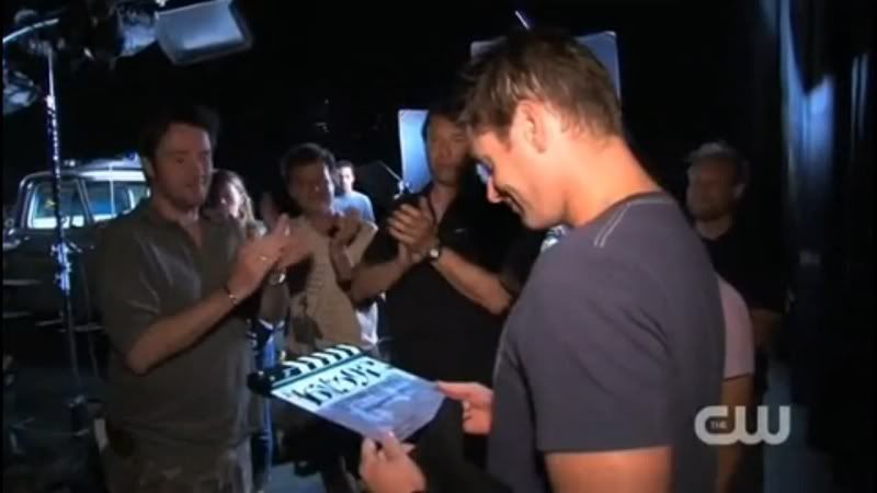 A little extra squee about this video. I noticed when I was capping that the gal sitting next to Jensen (in white) is probably the Script Supervisor, a job I've done on a few independent films. One of the perks (if you're lucky) of being a Script Supervisor, is that you work closely with the director. So I have to say this, even though he'll never see it...Jensen, I'll be your Script Supervisor any day! :D And I'm not just saying that in a fangirlish way. I really think he'd be very professional, yet approachable (a big thing for me when I'm doing the job), and would be great to work with.