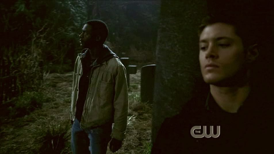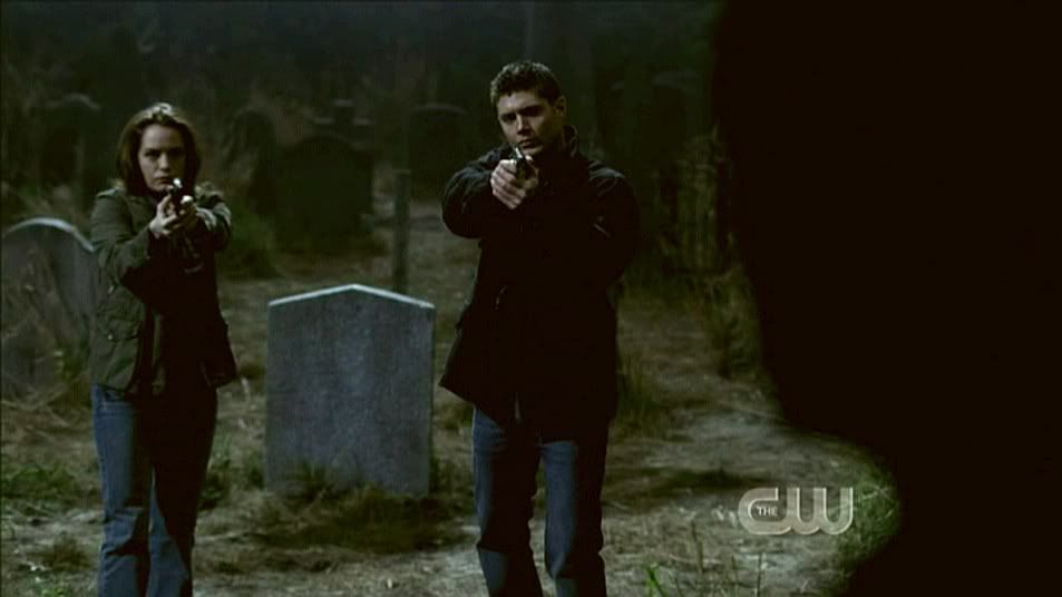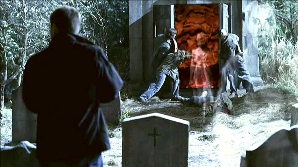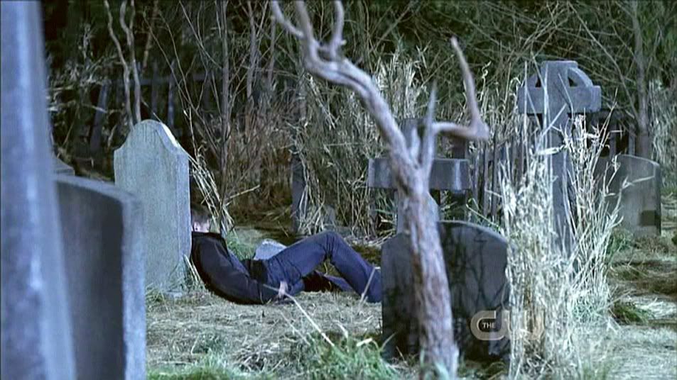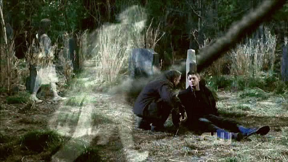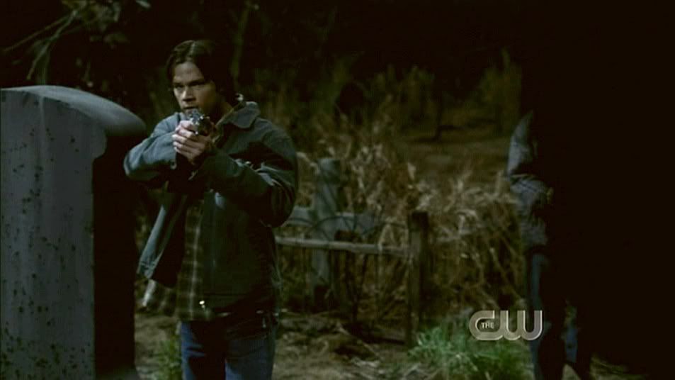 I loved this shot from the second I saw it. Guess it's the filmmaking geek in me. It's a beautiful steadicam shot as Jake enters the cemetery and Dean is revealed behind a tombstone.