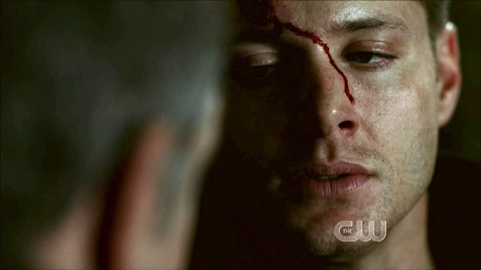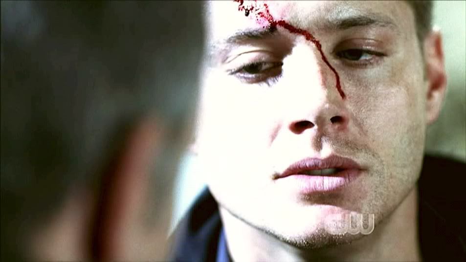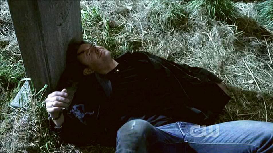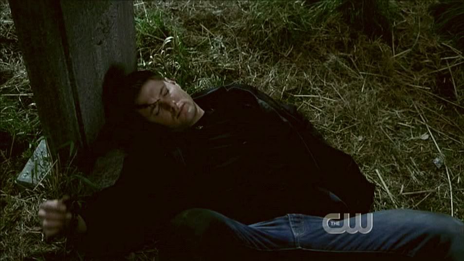 Sam looks worriedly at Dean as Jake states he should be dead. Ooooh...Dean with his eyes closed. So pretty.