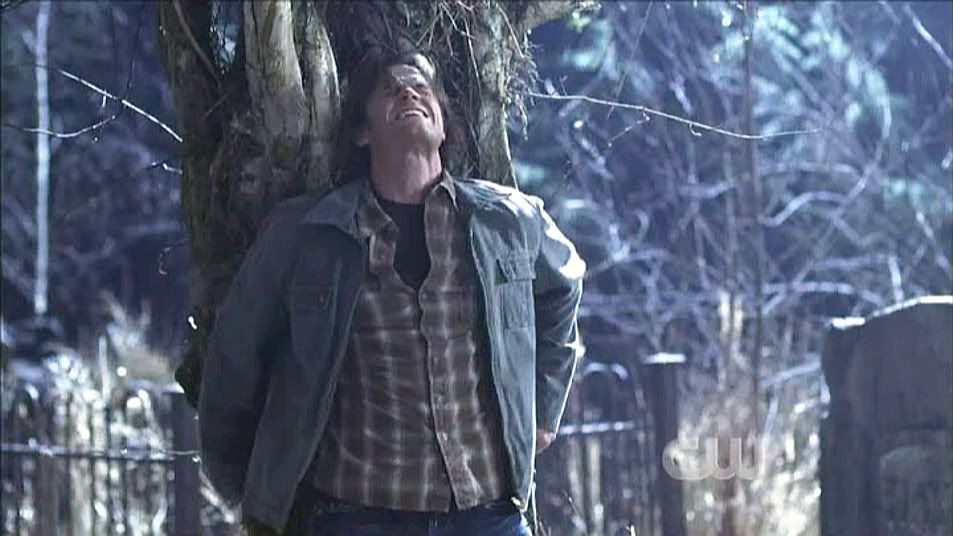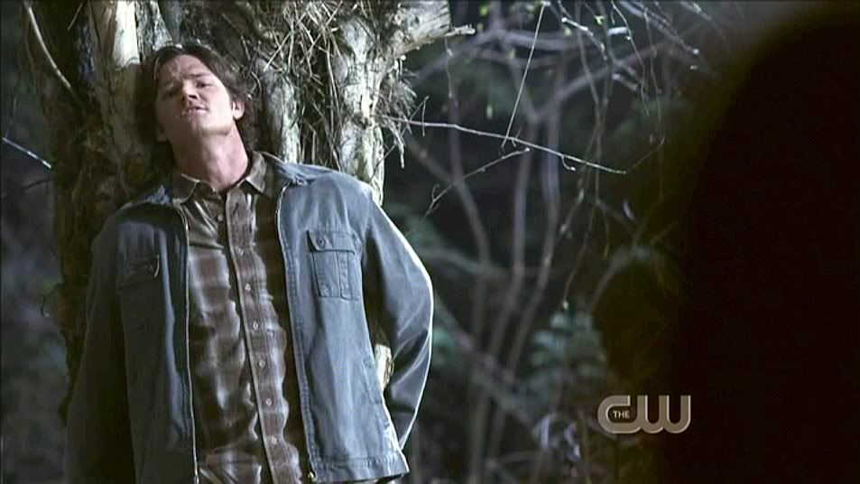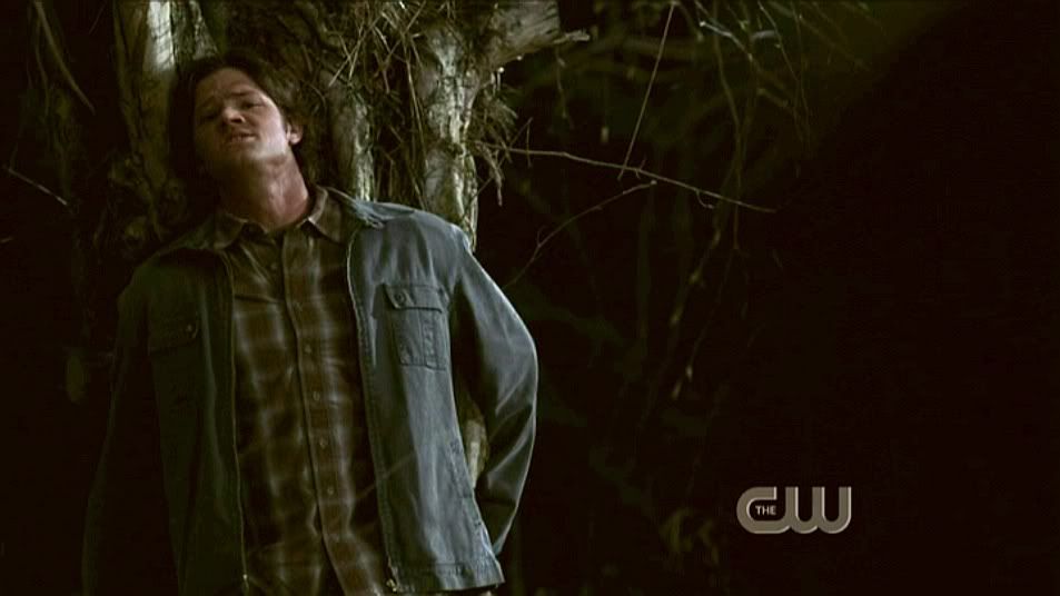Running to Dean's rescue, Sam is forced back into a tree by the YED.