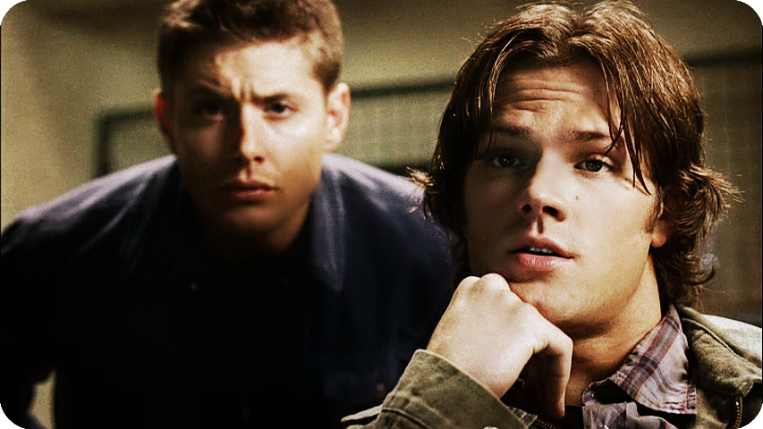 A nice gritty effect on the boys here. Have to snigger at Dean's "arched eyebrow of doom" in the background. :P