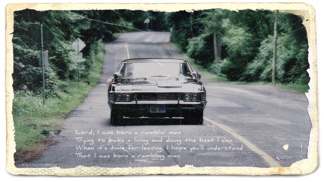 I thought of using the lyrics from The Allman Brothers' "Ramblin' Man" right away and the antique photo effect is thanks to PhotoScape.