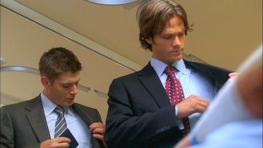 Time for another new Theme Week: Twins! This will be a week of the boys in matching poses or mirroring each other. We start with a good one for a Monday with the boys in suits and putting their badges away at the same time. *g*