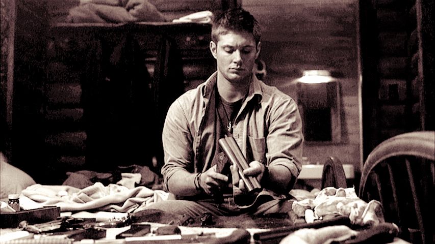 Today's fanart is for [livejournal.com profile] lily1002 who wanted a cap of "Dean cleaning/loading a gun". I only know of 2 times when this has happened: in S1's "Nightmare" and in S2's "No Exit" (except that was Sam cleaning them). Am I right about this? Anyone?