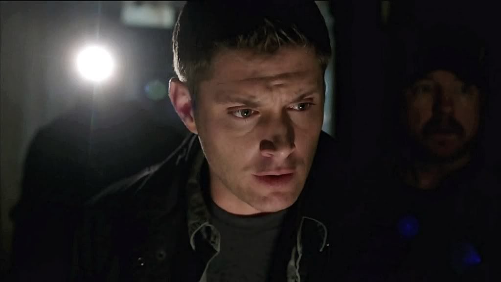 Great lighting here as Dean speaks to Sam through the door that slammed closed between them.