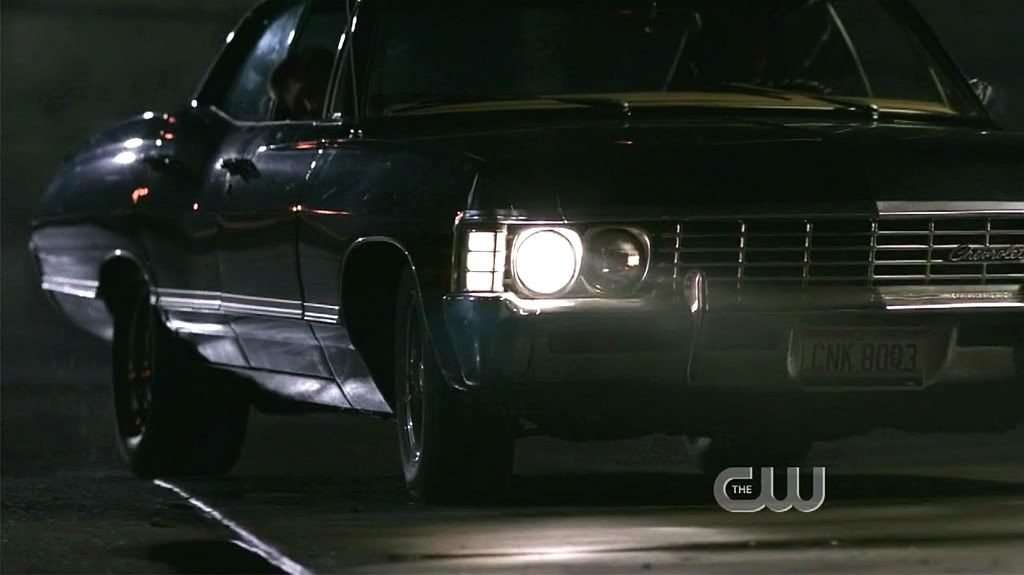 Impala Sunday! And we've got Baby (almost) all by herself in the dark of night. You can just make out Dean's head in the passenger side window as he's sleeping. Aw. Apologies for the ugly CW logo. It's an old cap.