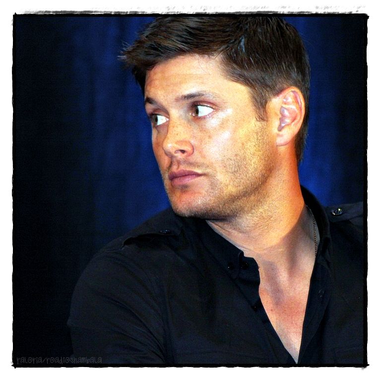 Jensen's handsome neck on display w/bonus arched eyebrow. :)