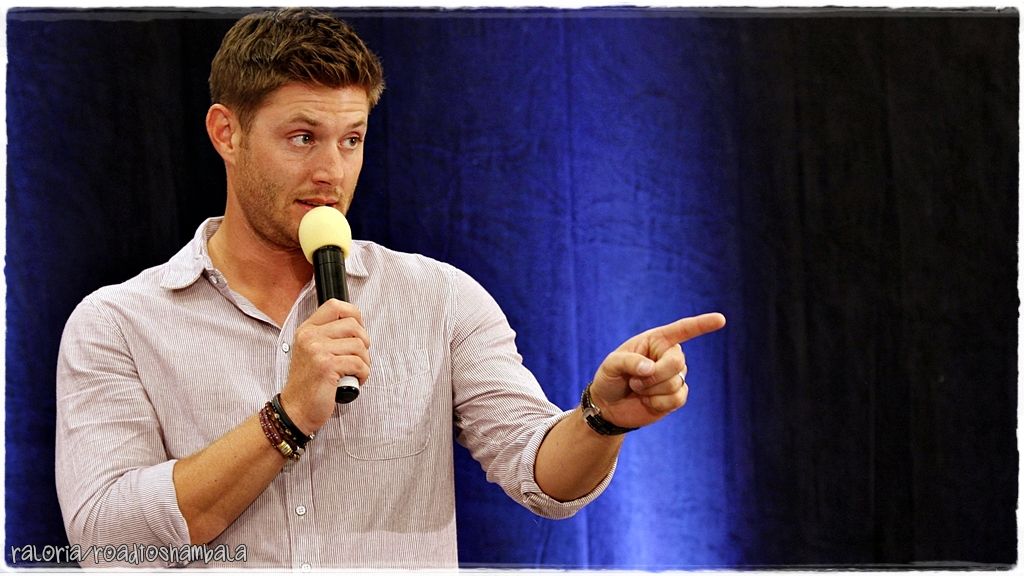 Jensen running the auction of Jared's birthday goodies. Definitely a highlight of the con. :)