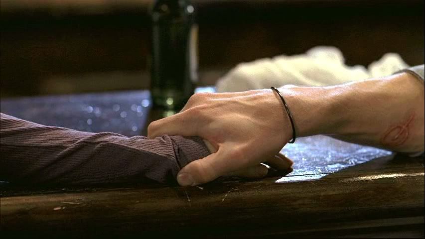 One of my favorites: Demon-possessed Sam gripping Jo's wrist. I think that binding mark on the arm just makes it hotter. Yowza.