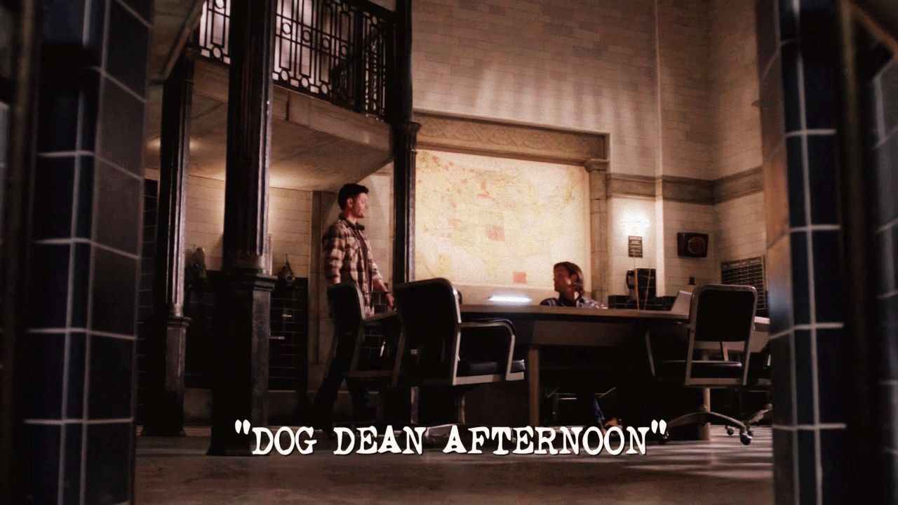 Reminder: I do add a few effects to each one of these. I try to keep it subtle though so the overall feel of the original isn't lost.Nice low angle shot as Dean enters the War Room area of the Bunker where Sam is hanging out.