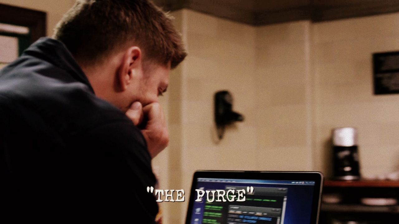 Dean doing online research in the Bunker's kitchen. Sorry about the blurriness, it was a panning shot so the camera was moving. Very hard to get a clear cap when that happens.