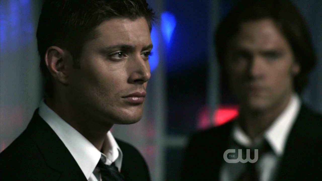 Smoldering Dean...with Sam in the background. Sorry about the logo.