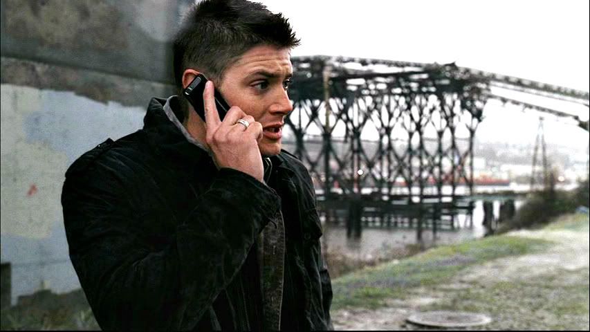 Dean on the phone in the rain. This needs to happen again because somehow it IS hot. :P