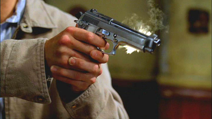 Happy to capture this moment when Sam's gun gets hit by a ricocheting bullet and knocked out of his hands. Hand!porn and gun!porn!
