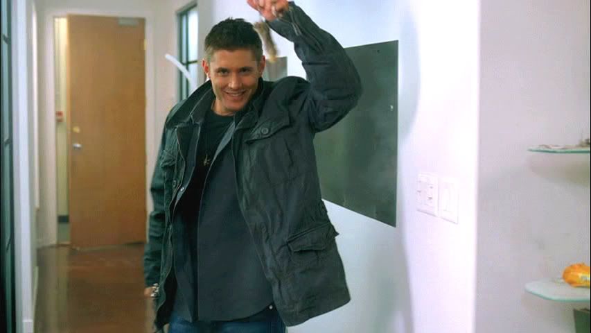 We wrap up Smiles Week with this adorable one from Dean as he triumphantly holds up the rabbits foot before leaving Bela's apartment. Heehee!