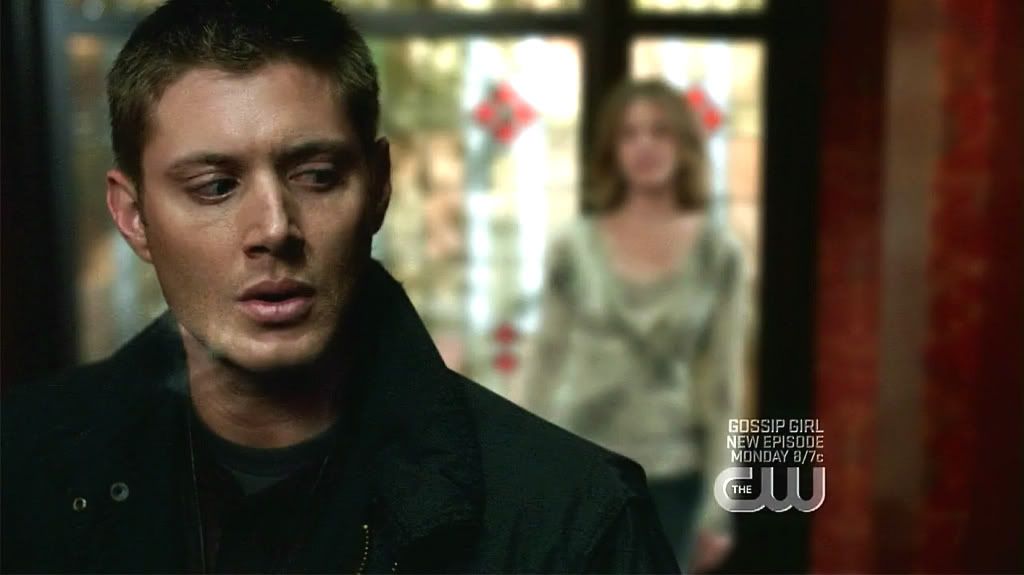 That cold breath of air as Dean senses Meg's spirit is behind him.