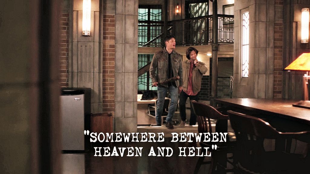 The boys arriving back home to the Bunker after a series of hunts and Dean's all victorious and bloody.