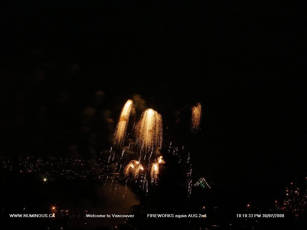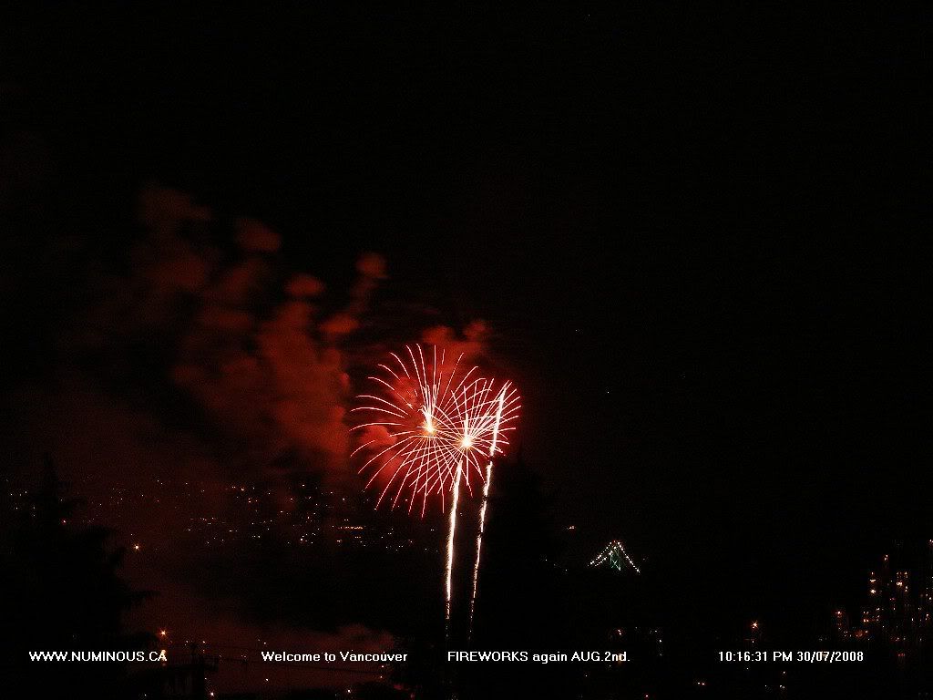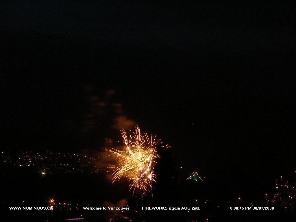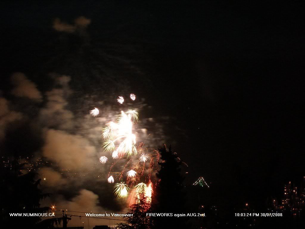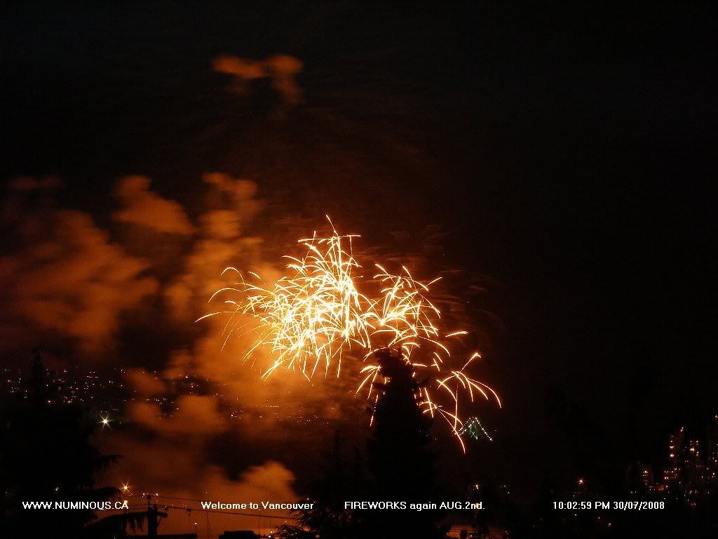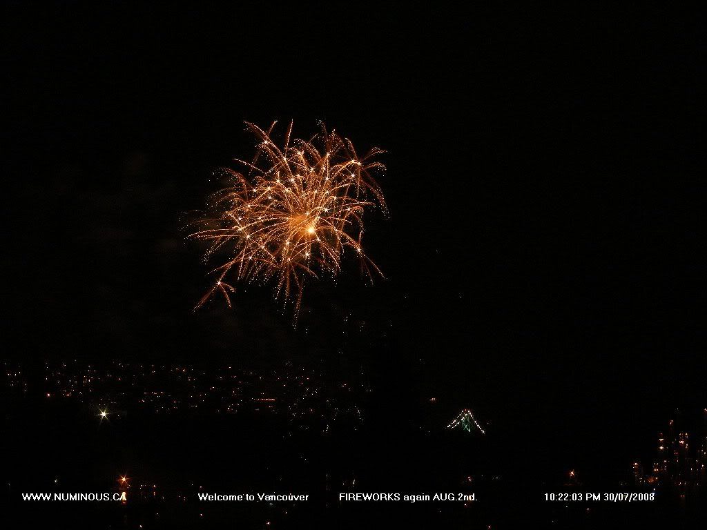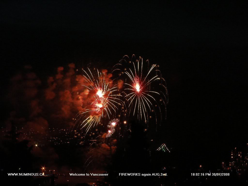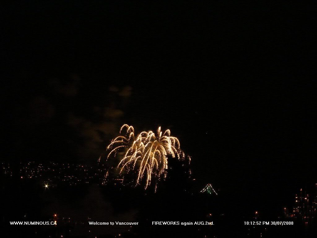 These are the webcam shots I grabbed on Wednesday night (July 30th) during China's fireworks show up in Vancouver. Got quite a few this time...67 in total. I've also got YouTube videos of the show, including one that's very unique. Once again I used Kat Kam & this Downtown Vancouver Webcam.