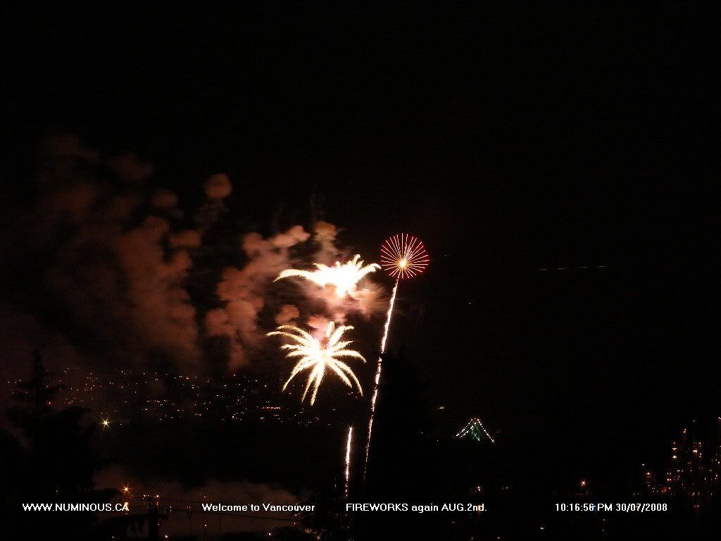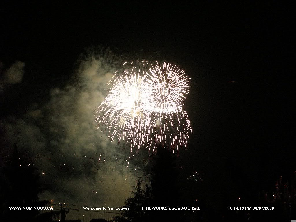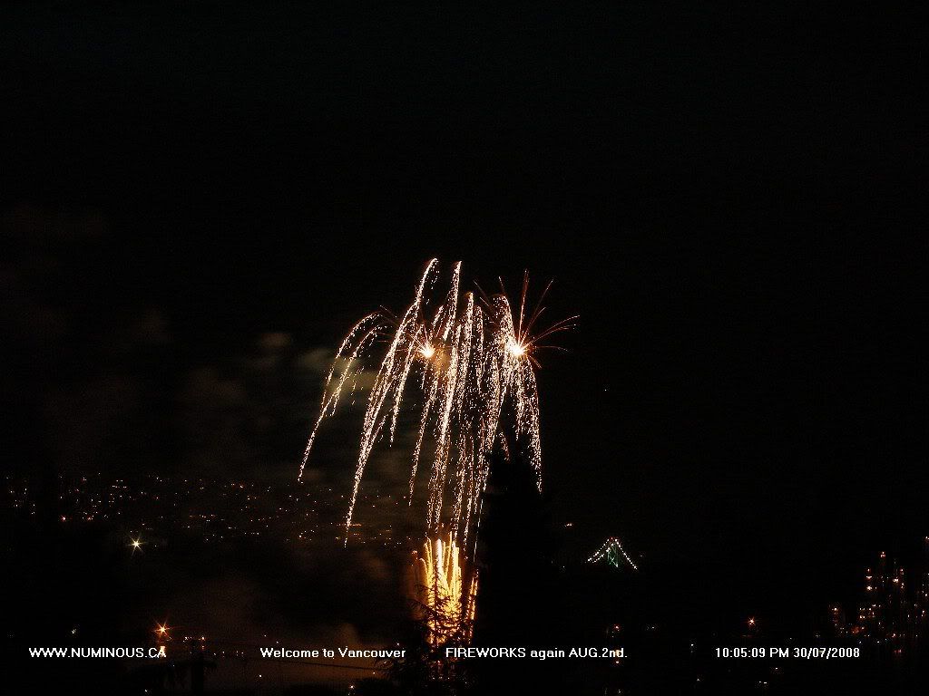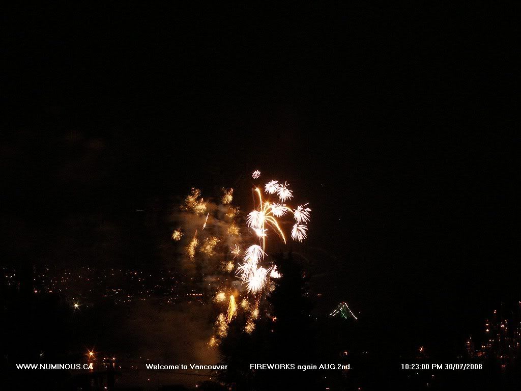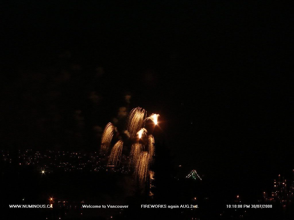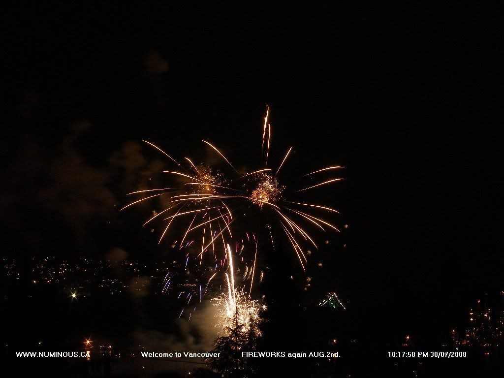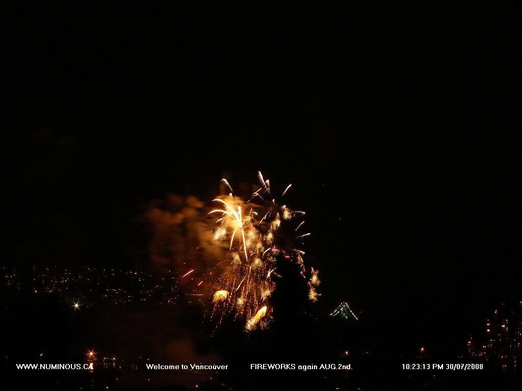 These are the webcam shots I grabbed on Wednesday night (July 30th) during China's fireworks show up in Vancouver. Got quite a few this time...67 in total. I've also got YouTube videos of the show, including one that's very unique. Once again I used Kat Kam & this Downtown Vancouver Webcam.