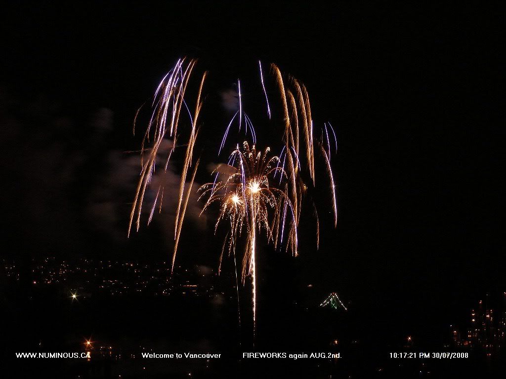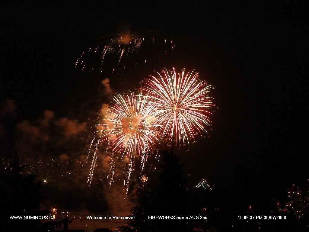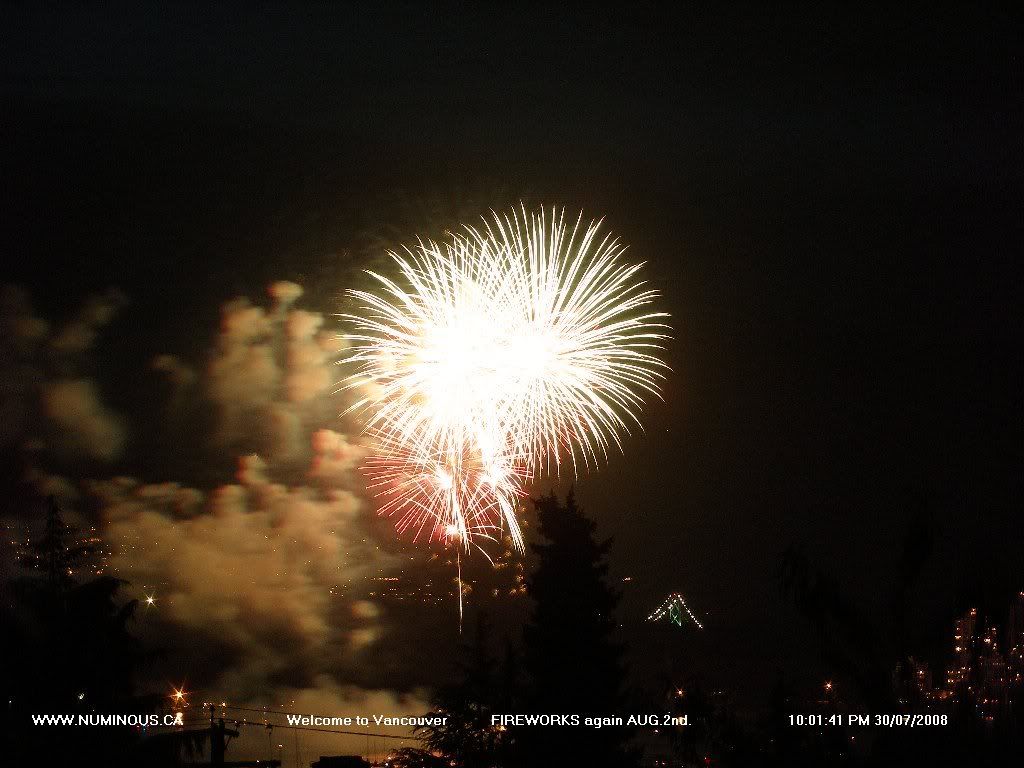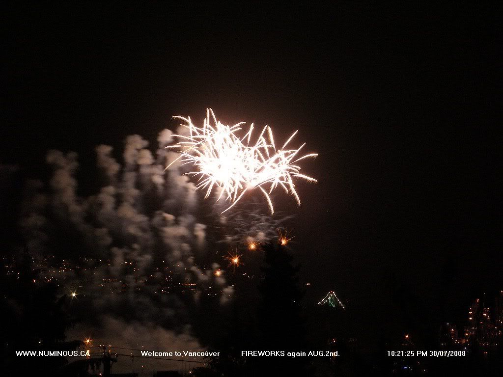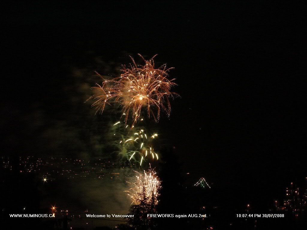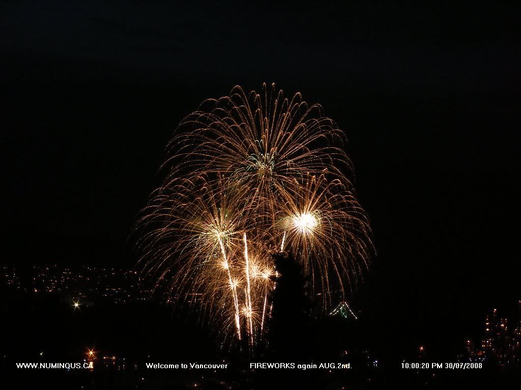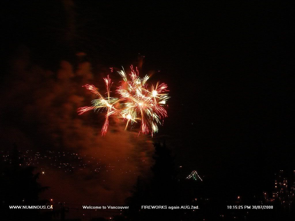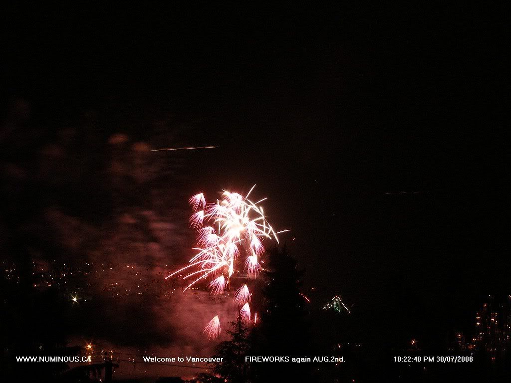 These are the webcam shots I grabbed on Wednesday night (July 30th) during China's fireworks show up in Vancouver. Got quite a few this time...67 in total. I've also got YouTube videos of the show, including one that's very unique. Once again I used Kat Kam & this Downtown Vancouver Webcam.