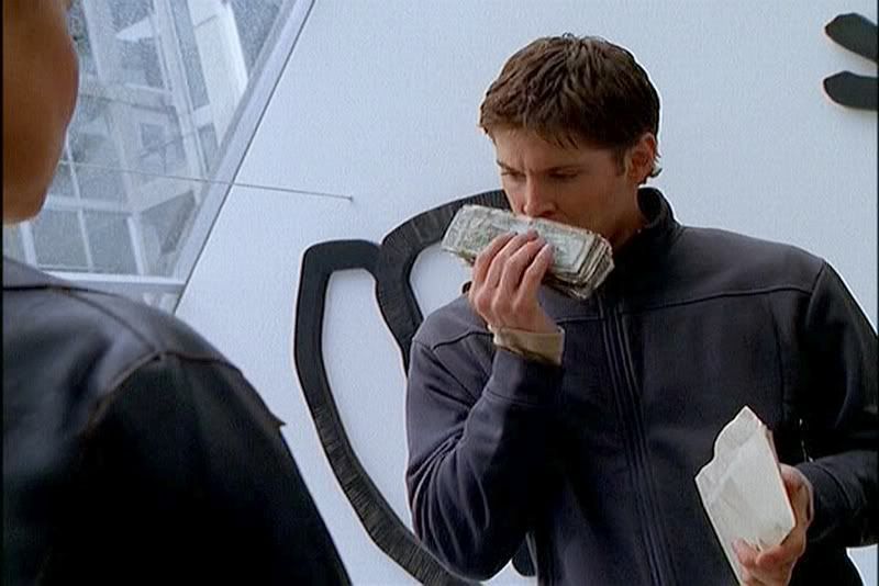 Part 3 starts with Alec still trying to buy back "Joshua #2" from Rita (isn't it cute how Alec always smells money - I wonder if that's something Jensen added to the character?). She makes a deal with him instead...2 more paintings and she'll be willing to give them the painting back. But when Alec shows them to her, she's unimpressed and the deal's off. Then Joshua says he wants to steal the painting back, but Alec tries to talk him out of it because Rita will know they're the ones who stole it and his painting career would be over.