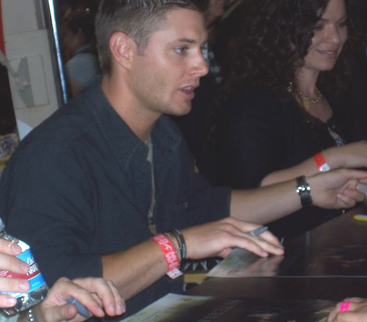 That last pic is so adorkable. It's rare to see Jensen so silly & goofy with a fan. :)