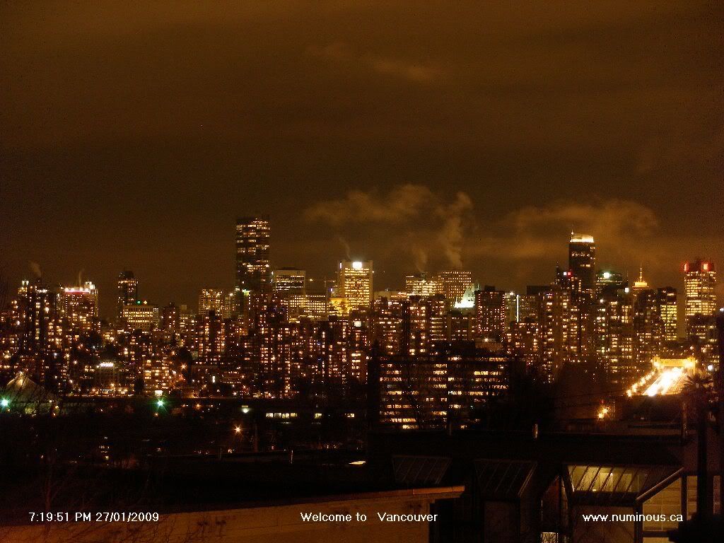 Jan. 27th, 2009 07:28 pm| Vancouver looks beautiful tonight, all bejeweled in lights, glowing against the clouds above. I just had to share the image - courtesy of Numinous.ca Webcam. Click on the thumbnail to see it full-sized (1024 x 768). |