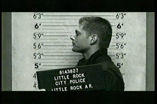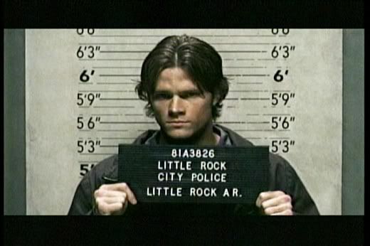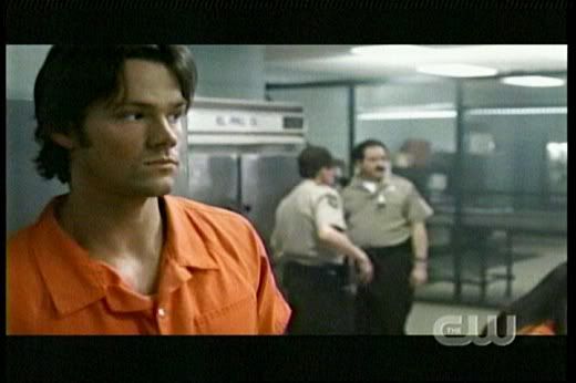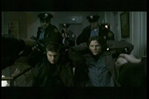 * Love the little glare Sam gives to Dean as they're arrested and handcuffed. It's those little brotherly moments that I love the most about this show. It gives it a special depth that other shows don't have.