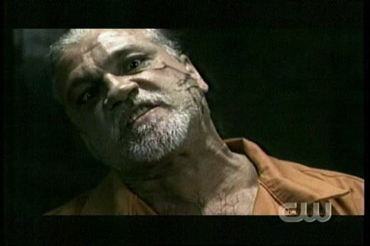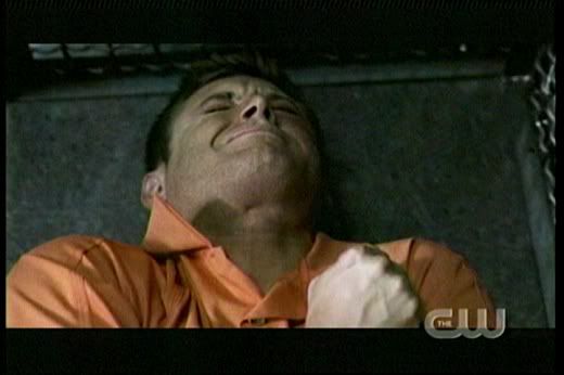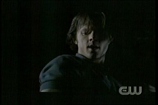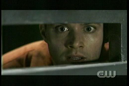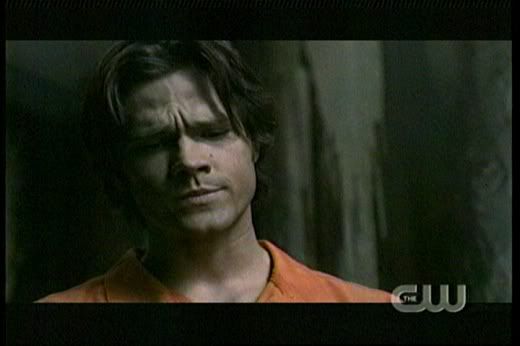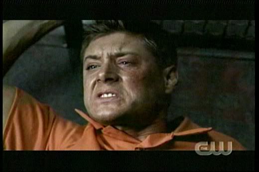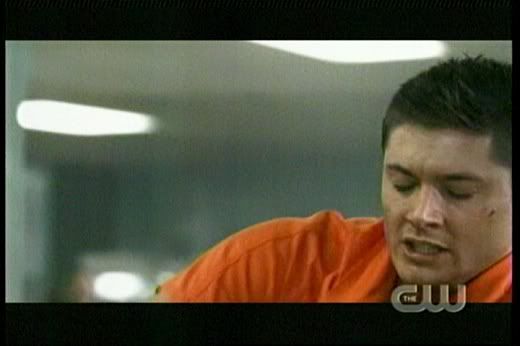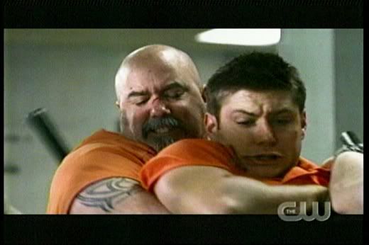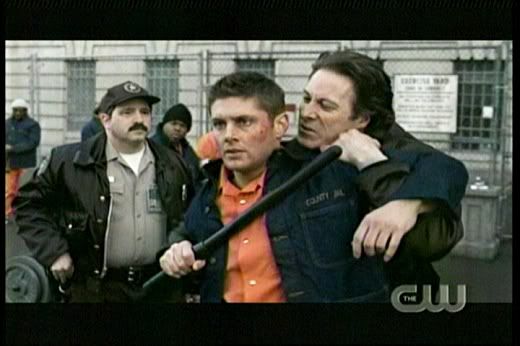 * Love it how Dean gets all protective over Sam when that big guy, Lucas bumps into him. The reference to "Taxi Driver" was great, too. 'Course, I always love it when Dean is kickin' someone's ass! Whoohoo! Go Dean! The guard was scary, too. So glad they kept his identity a secret for so long. And you gotta love Dean's whole devil-may-care attitude here..."Are we havin' fun yet? Huh?"
