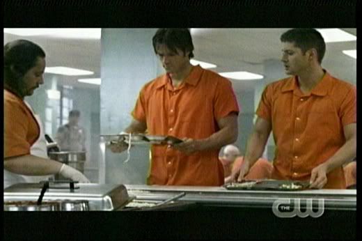 * Okay, seriously. What kind of a prison has air vents that are so easy to get into? And how on earth did Jared fit himself inside there? And why send Dean and Tiny to the infirmary for just a few cuts from their fight?
