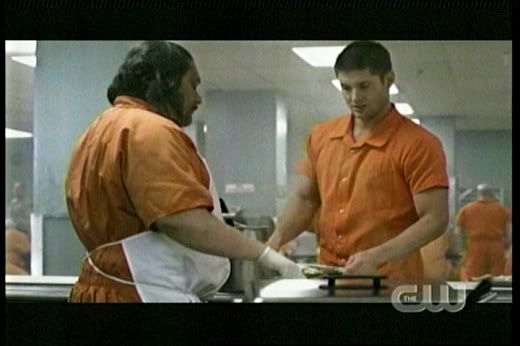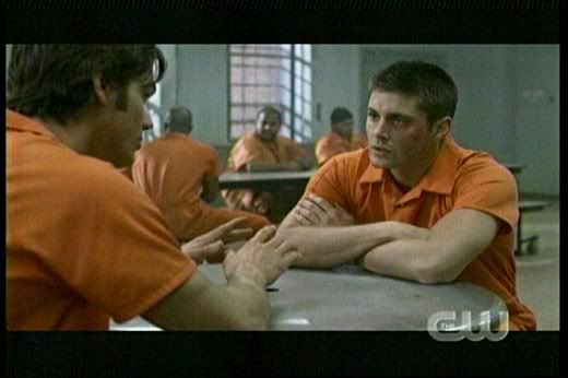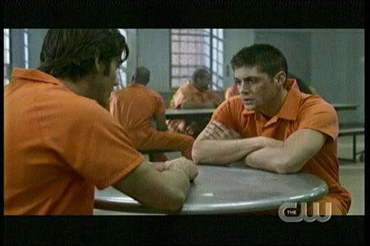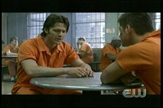 * It's great to finally see Dean playing poker. Now if we can just see him playing pool in an episode, I'd be one happy fangirl. And the fact that he's so in tune with prison life is also cool ("the currency of the realm"), even though it clearly makes Sam uncomfortable.