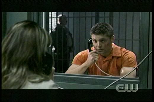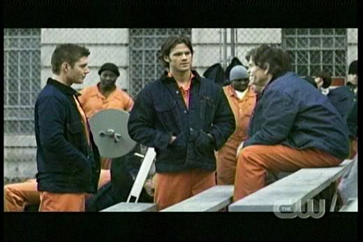 * I really thought the brothers were in major trouble here. On my repeat viewing I loved catching Deacon call Dean a "hard case" and Sam "sweetheart". Heehee! And how cute is Deacon's amused reaction as they both respond with "what?" when he breaks up their little arguement about about getting out of the prison? Even Deacon is caught by the charm of the Winchester brothers!