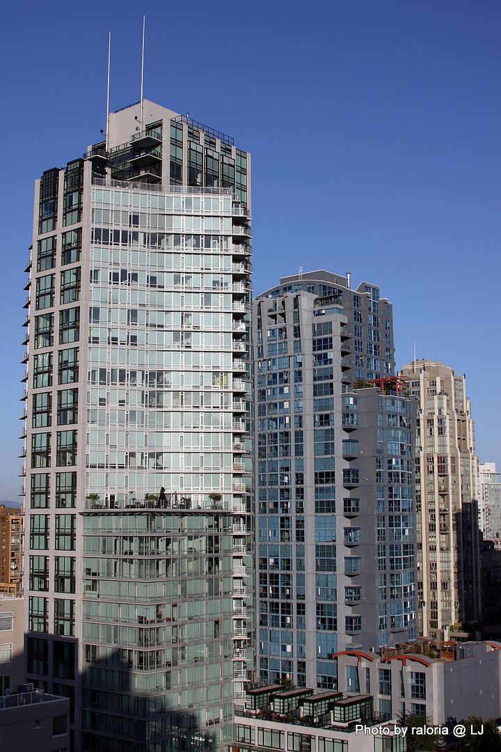 Living some 150 miles south of Vancouver, in Washington state has it's privileges. It's an easy 3 hour drive by car and we (my mom & I) lucked out with perfect sunny weather. We arrived in downtown Vancouver, at the Best Western Downtown hotel, around 4 in the afternoon. Wonderful hotel, btw. I highly recommend it, not only for it's location (less than a mile - 5 blocks from the convention hotel), but for it's wonderful staff, clean rooms, and wonderful White Spot restaurant. We settled into our room, with a lovely view from the 7th floor of the Granville Bridge. I even went up to the hotel's observation deck on the top floor and took some great pics of the city, including the top of the convention hotel, the Sheraton Wall Centre. :)