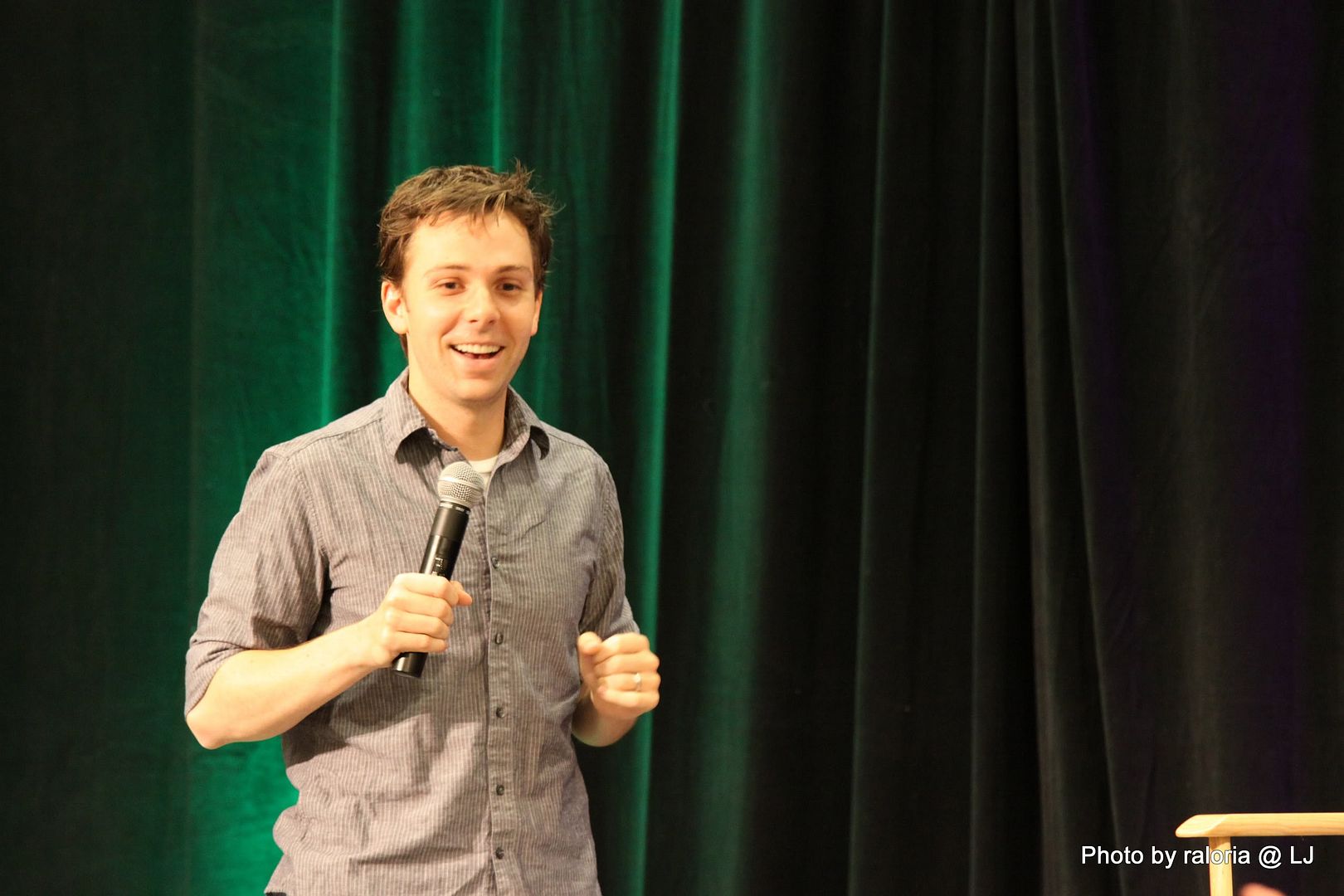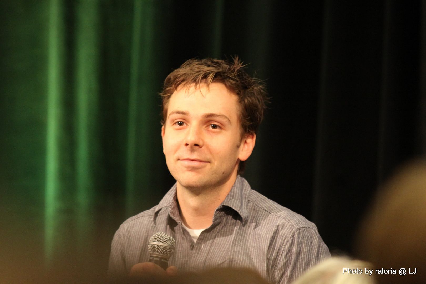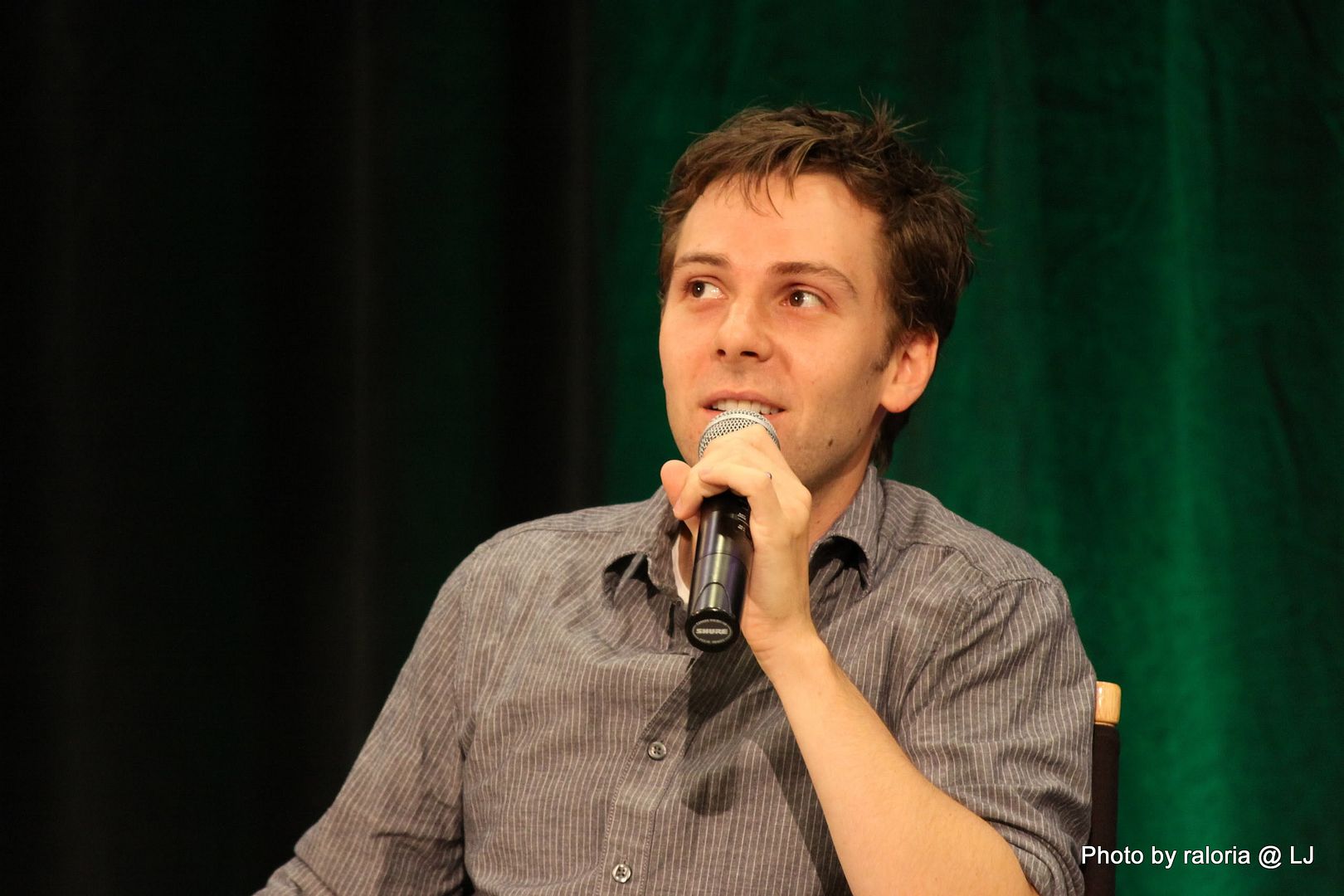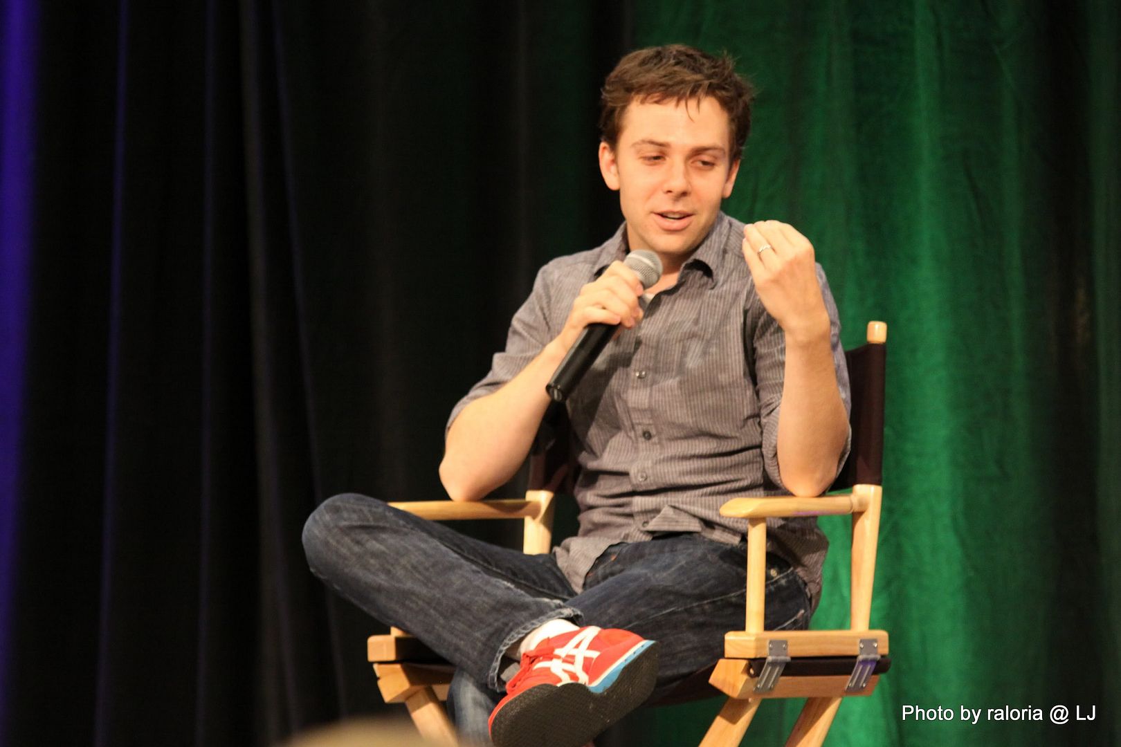 Gabe was delightful, of course. I recall him pointing out his red shoes that he got in London and how sappy he and his wife get when they're busy writing. Loved him showing a picture of his dog on his phone, too, and acting out how his wife tries to drive and admire her wedding ring at the same time! Oh, and he talked about being on the SPN set and most often hearing a "Dammit Jared!" coming from one of the trailers. Ah, the boys and their pranks. Hee! I also seem to recall him talking about working with some puppets (or maybe it was The Muppets?) and of something happening offstage and all the puppet heads turning in reaction to it and of it being a little weird and creepy. Anyway, it was hilarious!
