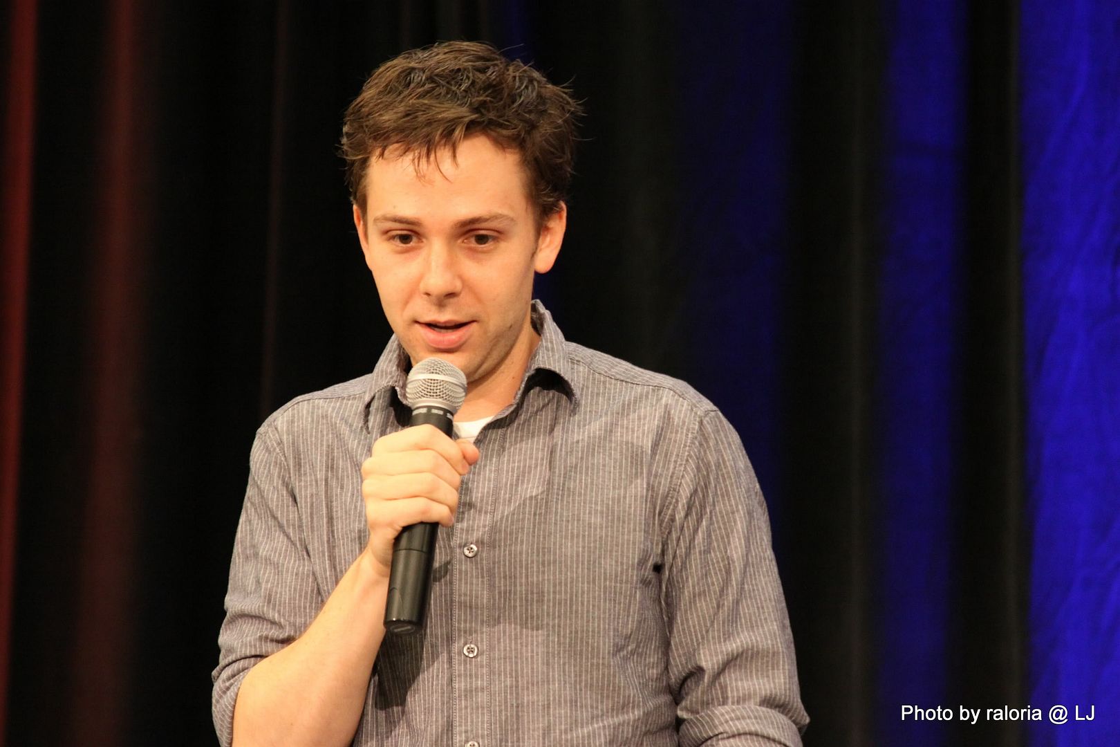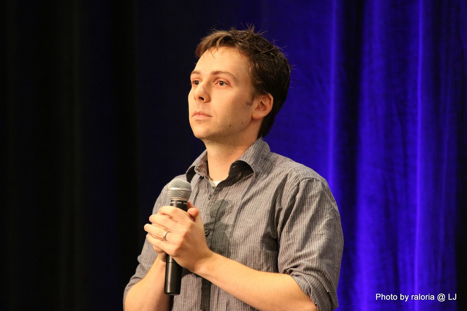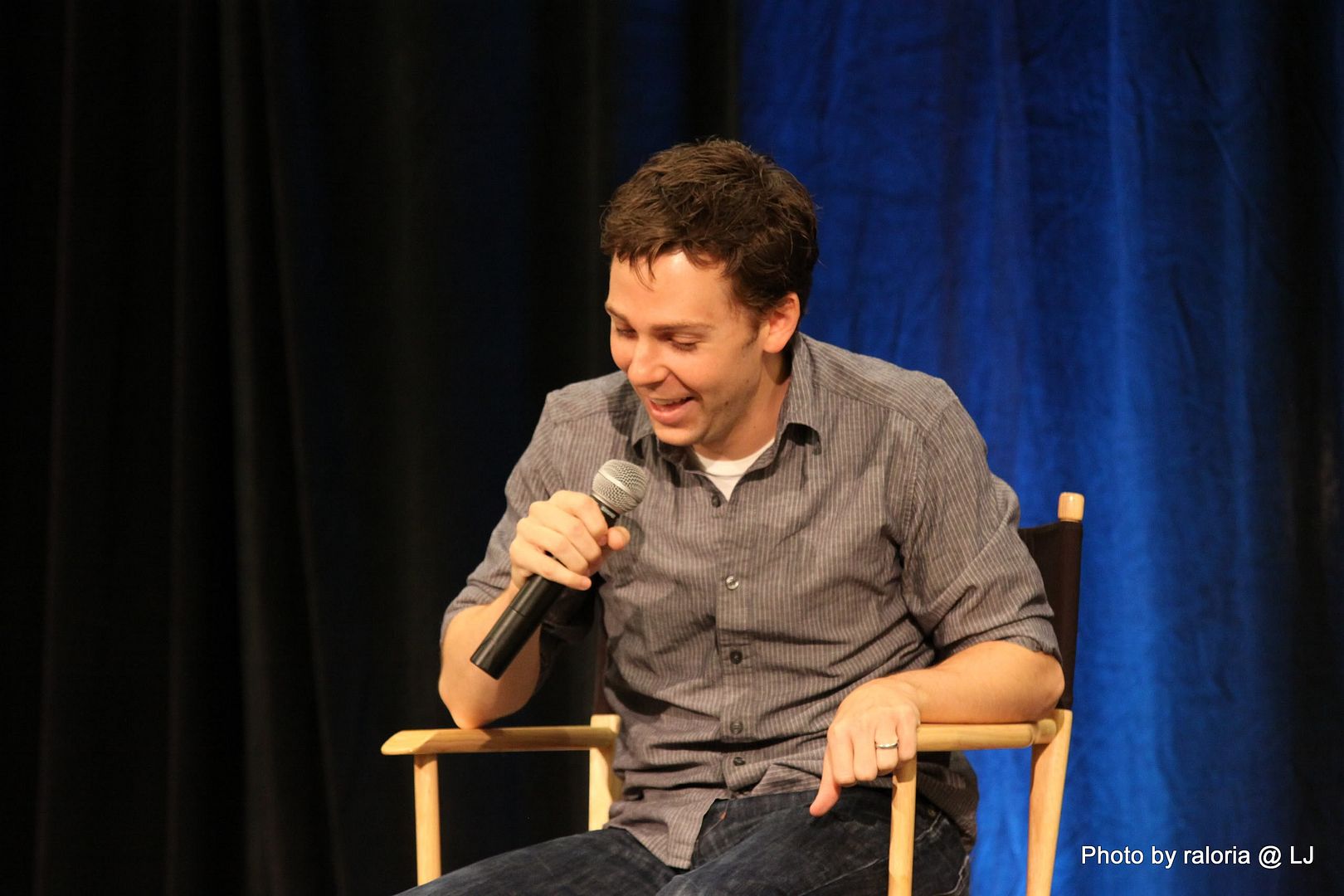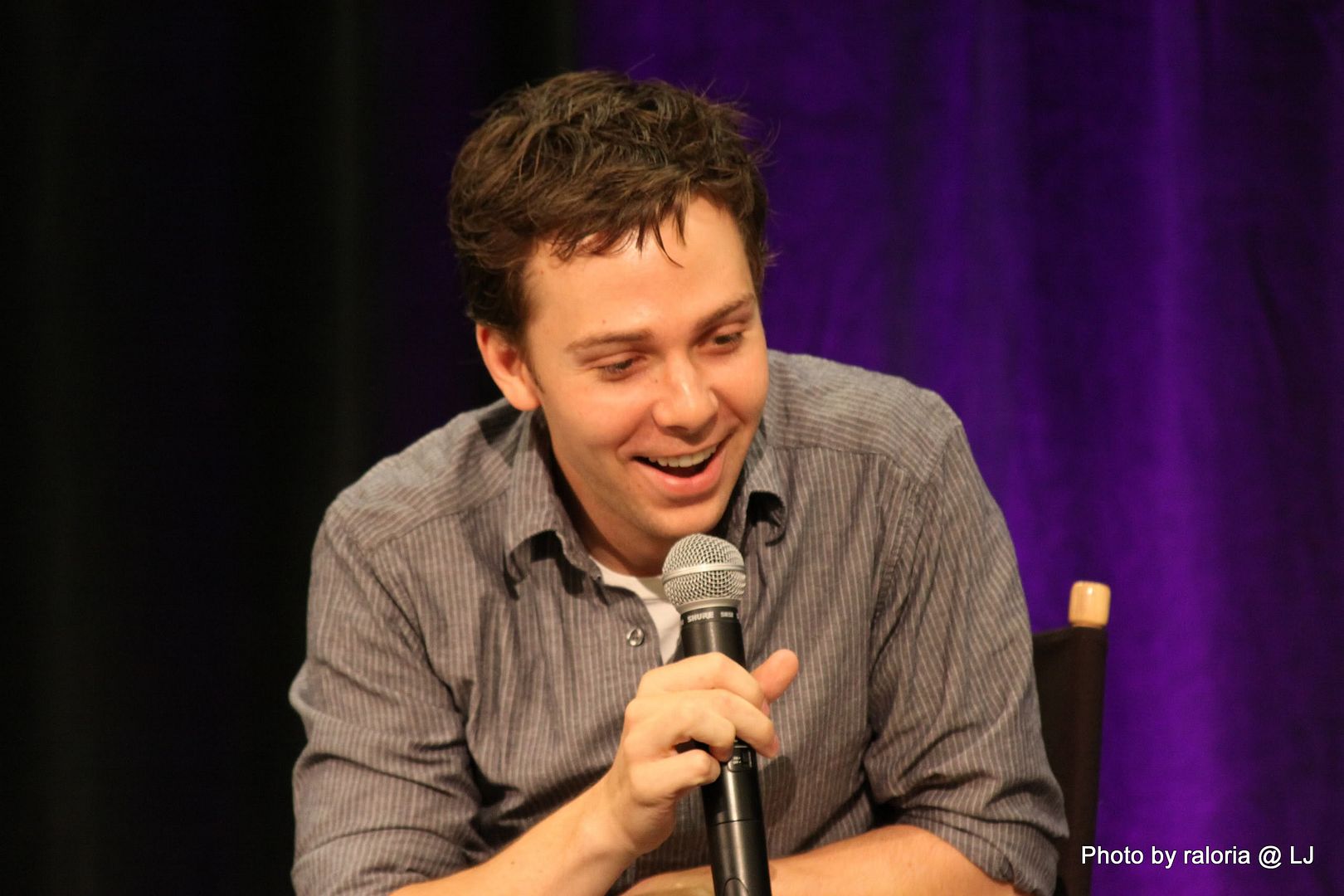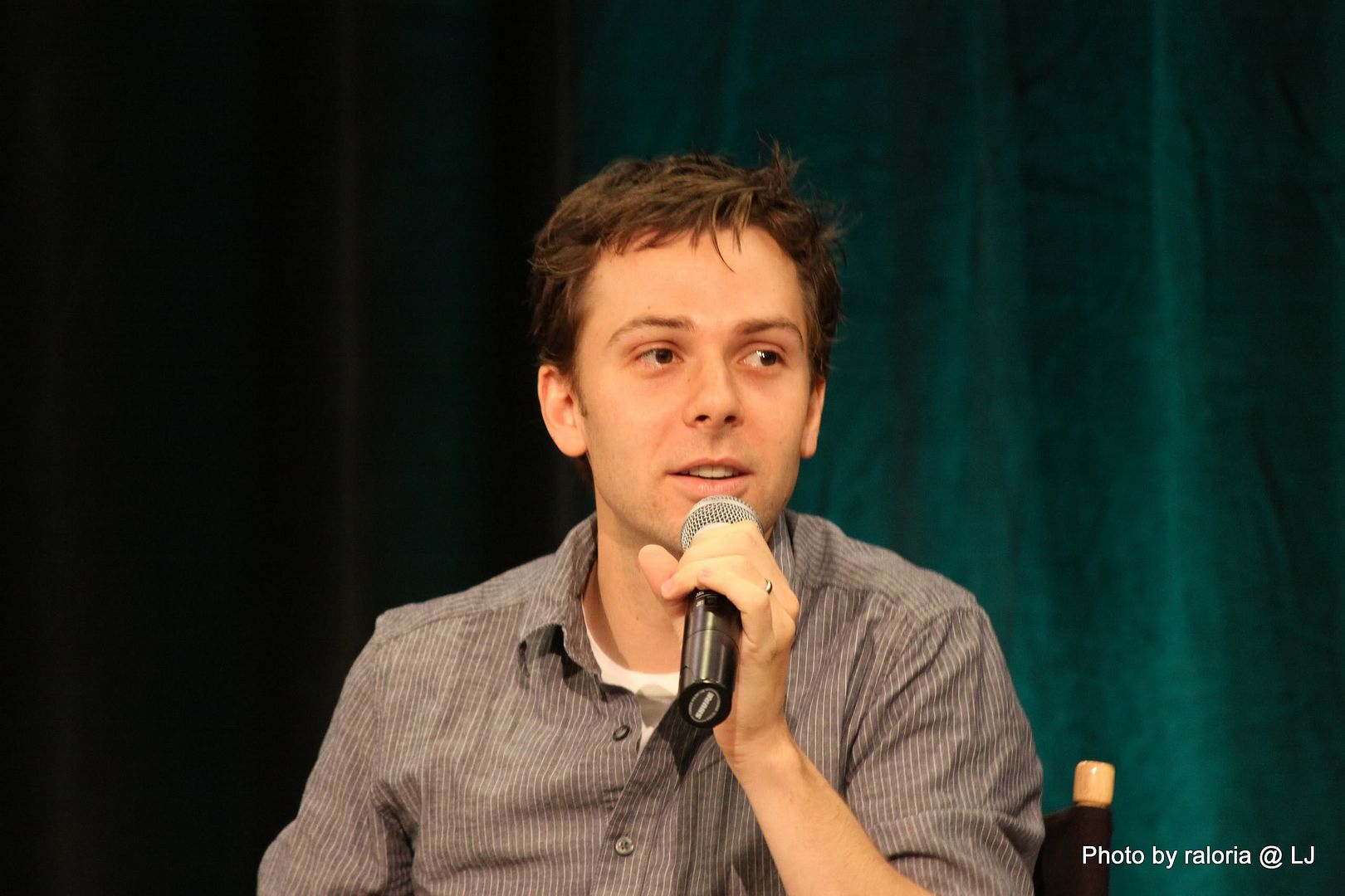 Gabe was delightful, of course. I recall him pointing out his red shoes that he got in London and how sappy he and his wife get when they're busy writing. Loved him showing a picture of his dog on his phone, too, and acting out how his wife tries to drive and admire her wedding ring at the same time! Oh, and he talked about being on the SPN set and most often hearing a "Dammit Jared!" coming from one of the trailers. Ah, the boys and their pranks. Hee! I also seem to recall him talking about working with some puppets (or maybe it was The Muppets?) and of something happening offstage and all the puppet heads turning in reaction to it and of it being a little weird and creepy. Anyway, it was hilarious!