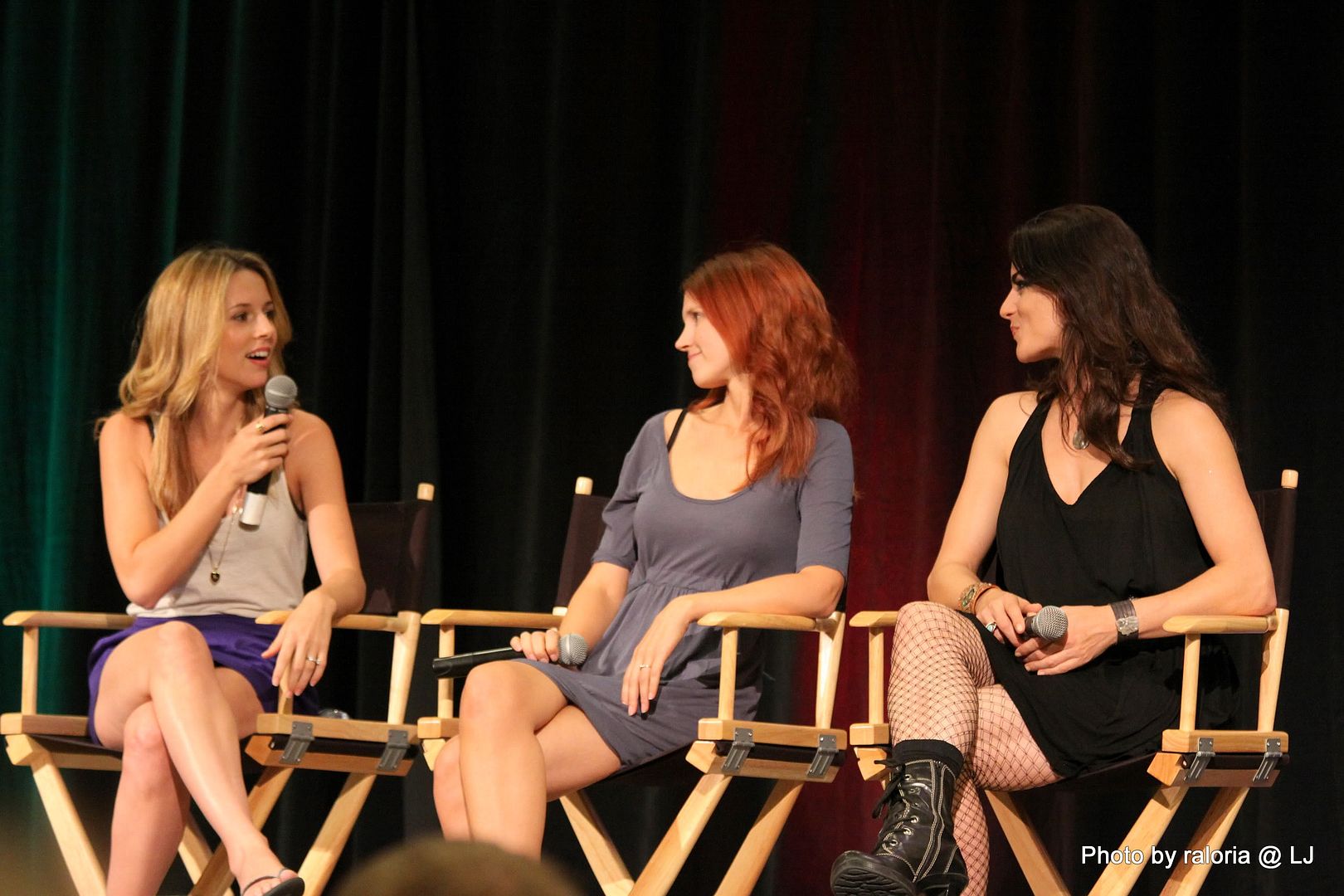 Okay, what do I remember? Again, I wish there were more accounts and videos online to help me with this. One part that does stand out (maybe because there is a video of it) was Julie talking about the sex scene in "Heaven And Hell". Yes, it was great because it was with Jensen....and he's hot! LOL But also because he made sure she felt safe and comfortable which is important for any actor. Loved her and Alona re-enacting the hand on the window moment, too! Turns out that was filmed the day before the sex scene and she was fully clothed. The other big stand-out would probably be the infamous life raft question which was given to Alona. I think her choices for a companion were Jared (too big she said), Sam Ferris, or Misha (who would be great because he builds houses, as Julie pointed out). Alona picked Sam, because she's a tough gal...and her mother. Awww. Traci talked about having to wear the special contact lenses to play Pamela when she was blind. She really couldn't see anything and the other actors would have to grab and swivel her hips to point her in the right direction as she walked.