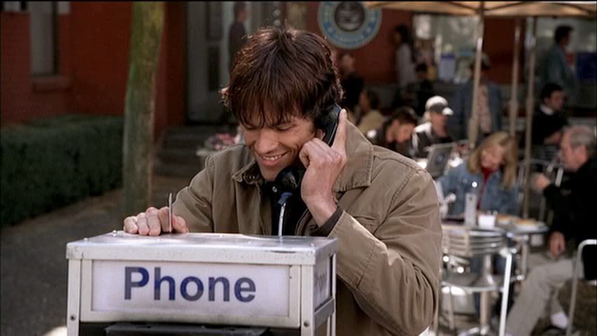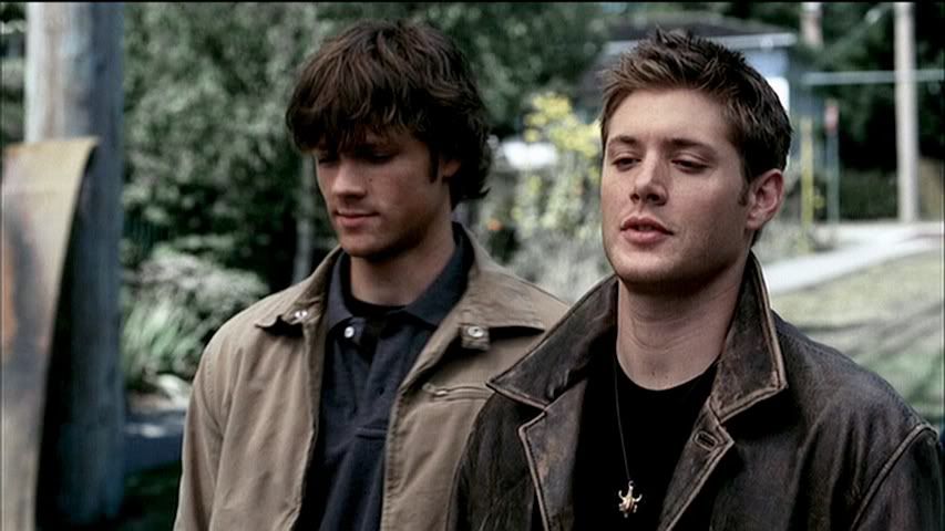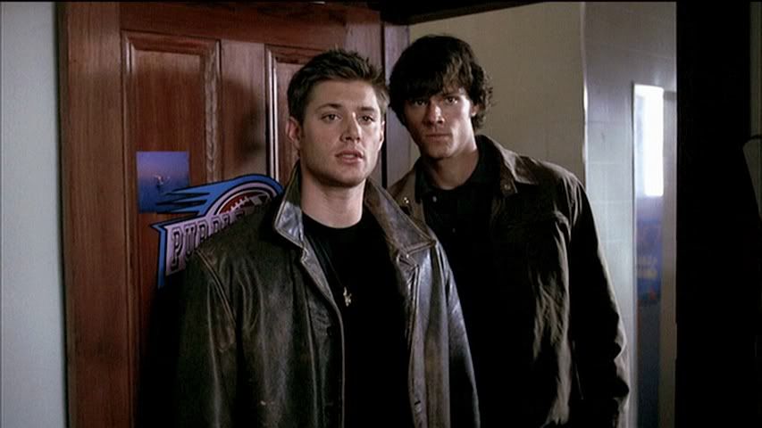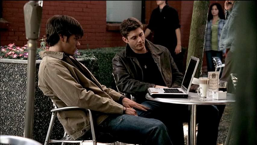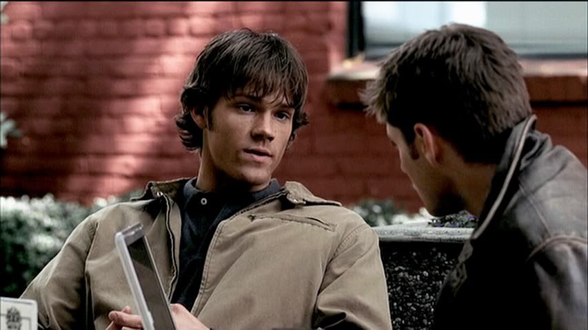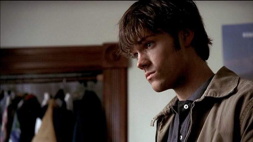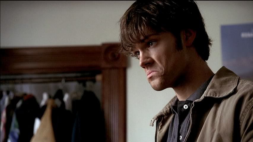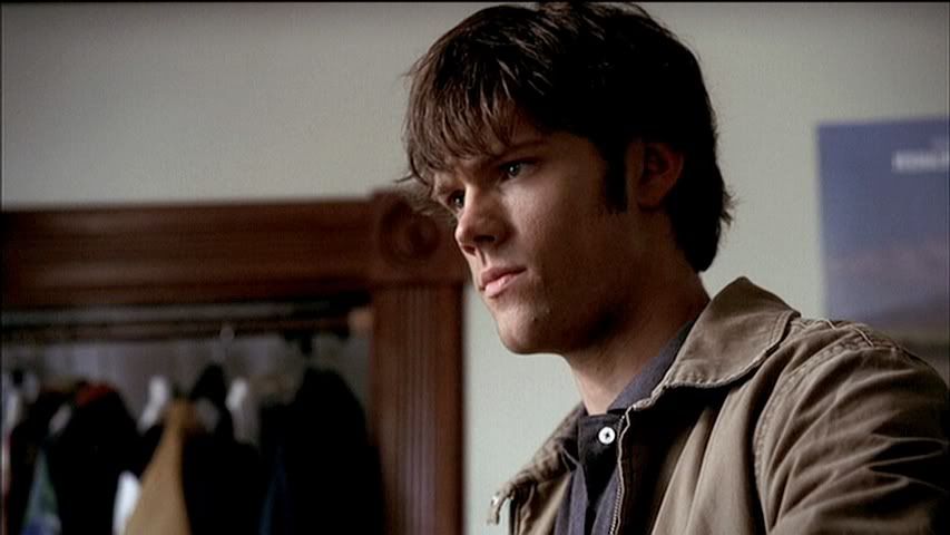 Having seen the deleted part of this scene on the DVD set, I kind of wish they had left it in. It further explains the whole Francis alias Sam ends up using, thanks to Dean. Anyway, plenty of Sam in this row to love...front and back.