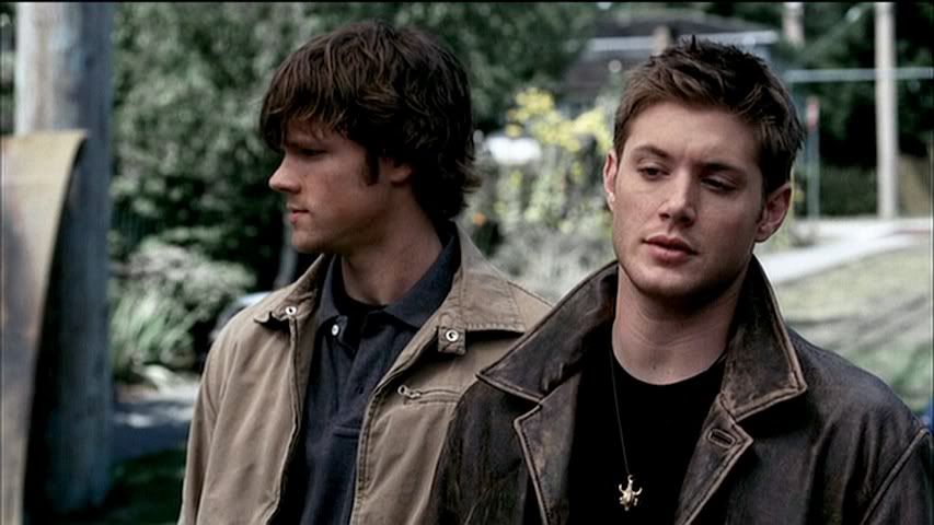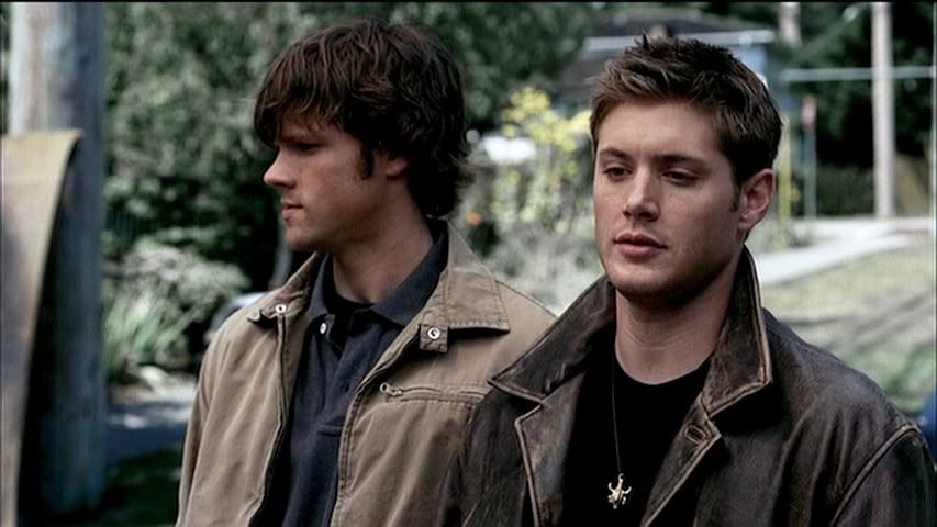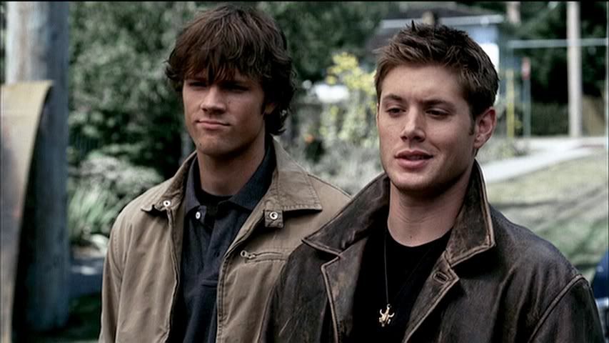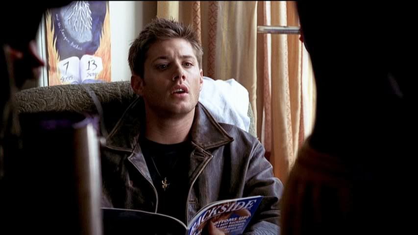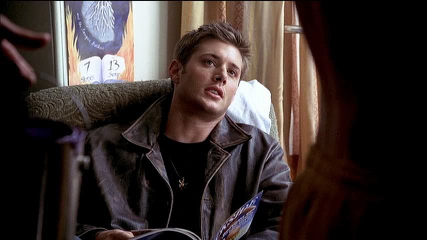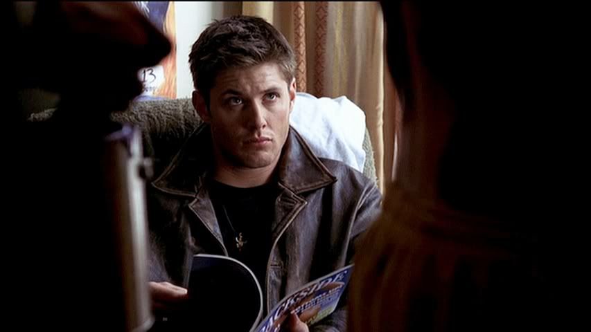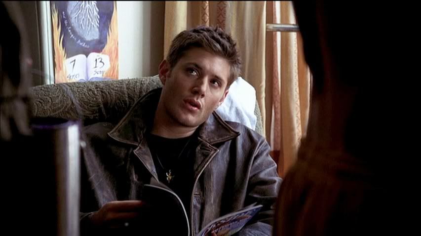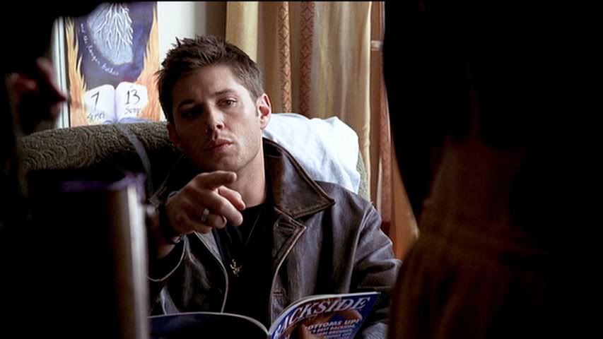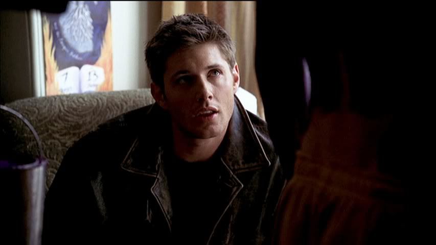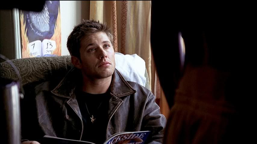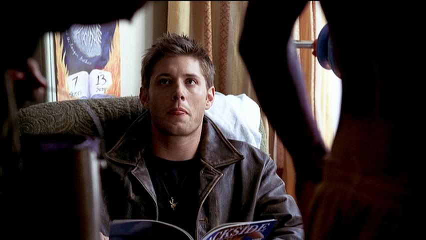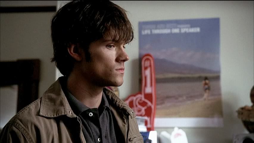 Kind of rare to get a good cap of Jared's eyes (particularly in the first season), but check out the second cap....pretty. Then we have Dean....being Dean. Heh.