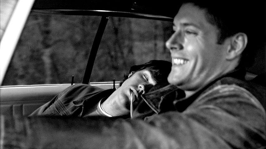 "There's one shot of Dean from "Hook Man" where he's in a cemetery, stripped down to a T-shirt, sweaty from shoveling, and lit by the grave's firelight. Yum. :)" and "Oh, and Sam's in a T-shirt in "The Benders." There's a great shot of him trying to fire the jammed rifle, and his biceps are really flexed. Also nice. :)"